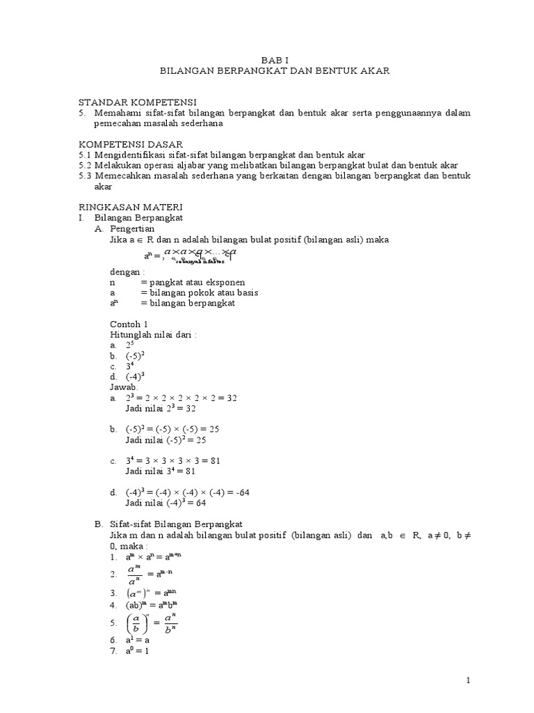 Kami menyajikan rangkuman lengkap untuk siswa smp, sebagian besar sudah kami rangkum tiap mata pelajarannya, dari kelas 7 hingga materi kelas 9. Kerjakan secara mandiri/berkelompok dan tanyakan pada guru apabila ada yang. Rangkuman materi bab 1 perpangkatan dan bentuk akar, ini berisikanmateri tentang sifat bilangan berpangkat, jenis perpangkatan, dan juga contoh pembahasannya. Bacalah materi dalam lkpd berikut dengan baik dan cermat. Bentuk akar dan bilangan berpangkat pecahan bilangan rasional dan irasional bilangan rasional adalah bilangan yang dapat dinyatakan dalam bentuk a/b dengan a, b bilangan bulat dan b ≠ 0.
