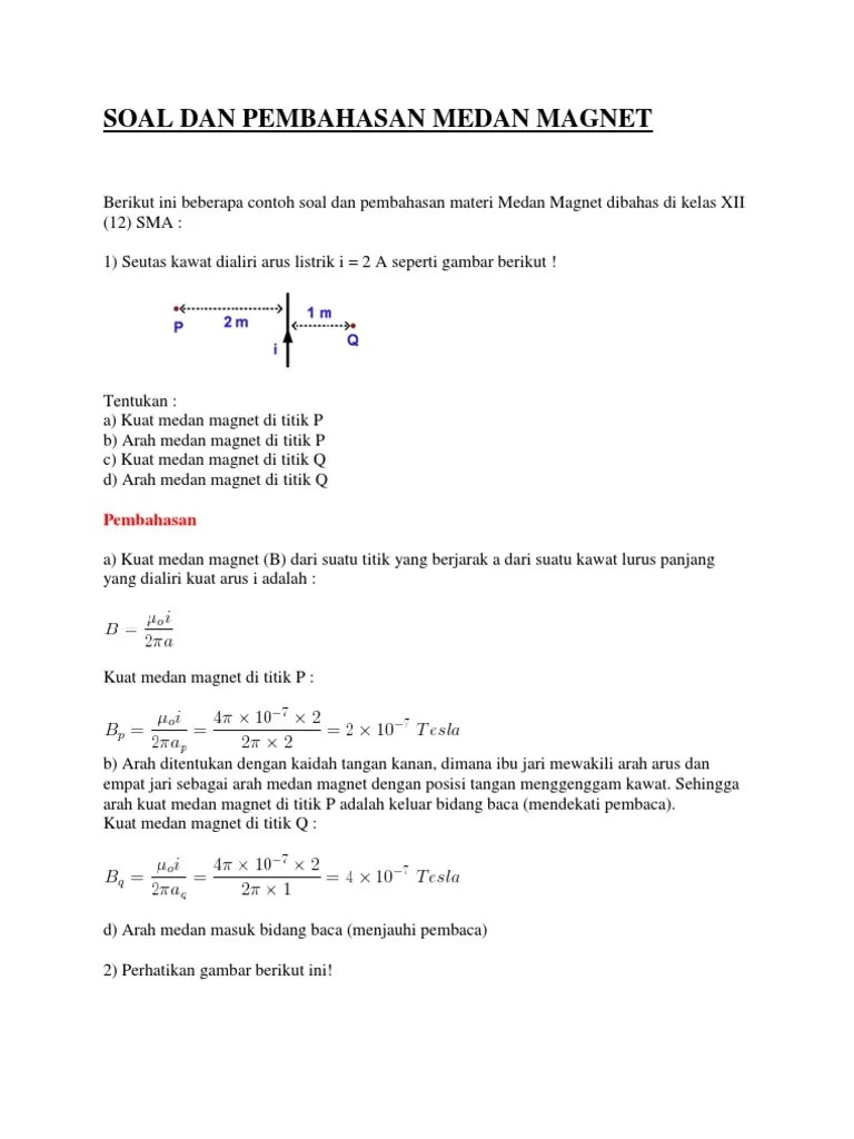 Soal Medan Magnet Dan Pembahasan - 10 Contoh Soal Essay Fisika Medan Magnet Lengkap Jawaban Dan Pembahasan Apipah Com / Soal dan pembahasan medan magnet.